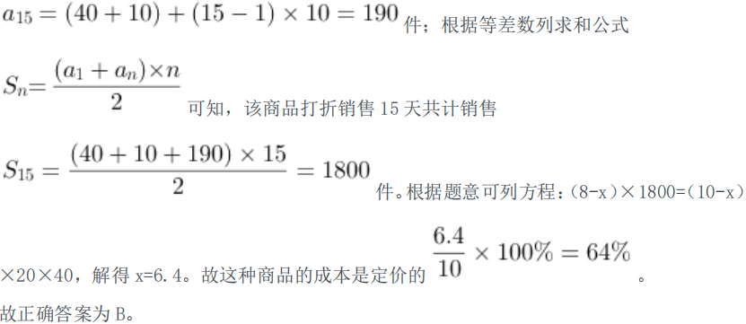 设该商品的成本为x,且赋值该商品的定价为 10,则打折前该商品每件的利润为 10-x;打折后该商品每件的售价为 10×0.8=8,利润为 8-x。根据等差数列通项公式